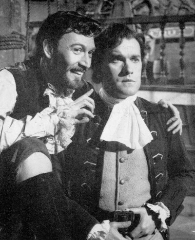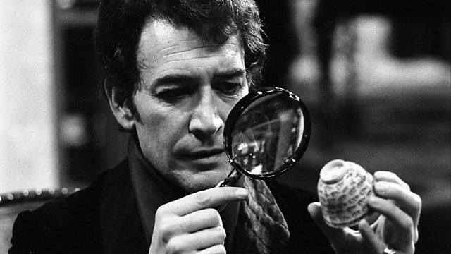 Above: Peter as Langdale Pike and Jeremey Brett as Sherlock Holmes in ‘The Three Gables’.