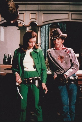 Above: Peter as Jason King in Department S. With Caroline Blakiston.