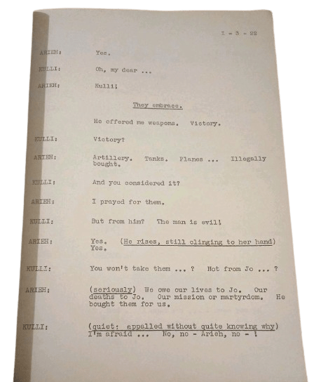 | ‘The Salt Land’ Peter Shaffer’s debut work. He would later go on to win Academy Awards, Tony Awards, and universal acclaim for ‘Amadeus’ and ‘Equus’. Written while Shaffer was working at the New York Public Library, This 90-minute television drama marked Shaffer’s first exploration of themes that would define his career: faith versus cynicism, idealism versus corruption, and the burden of history. Critics noted it contained “most of the themes that would re-emerge, transformed and magnified, time and time again” in his later work. One of only a handful of known surviving copies. Peter Shaffer’s personal copy is held at Trinity College, Cambridge (catalogued as disbound with damaged title page). Another copy exists in the National Library of Australia. PETER SHAFFER (1926-2016) |