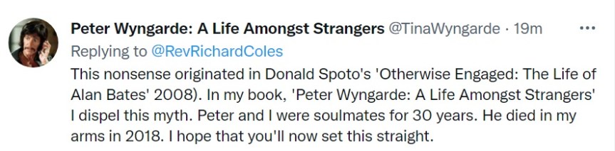 Once again, we have a lazy journalist relying on misinformation from unauthorised biographies – i.e. ‘And it emerged in a 2008 biography of actor Alan Bates that Wyngarde had been living a double life. Wyngarde was married briefly in his 20s, but had an affair with Bates that is said to have lasted ten years’. Alan Bates: Otherwise Engaged by Donald Spoto. (The content of this book is currently in dispute).