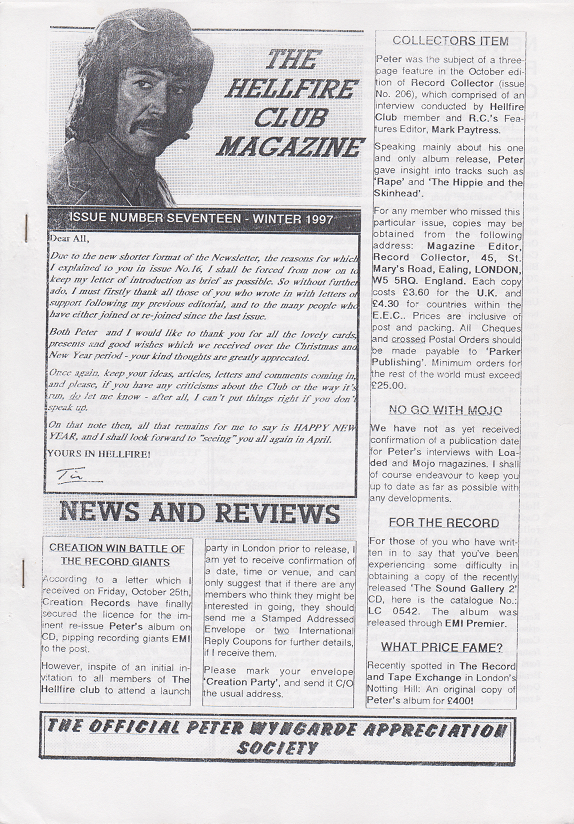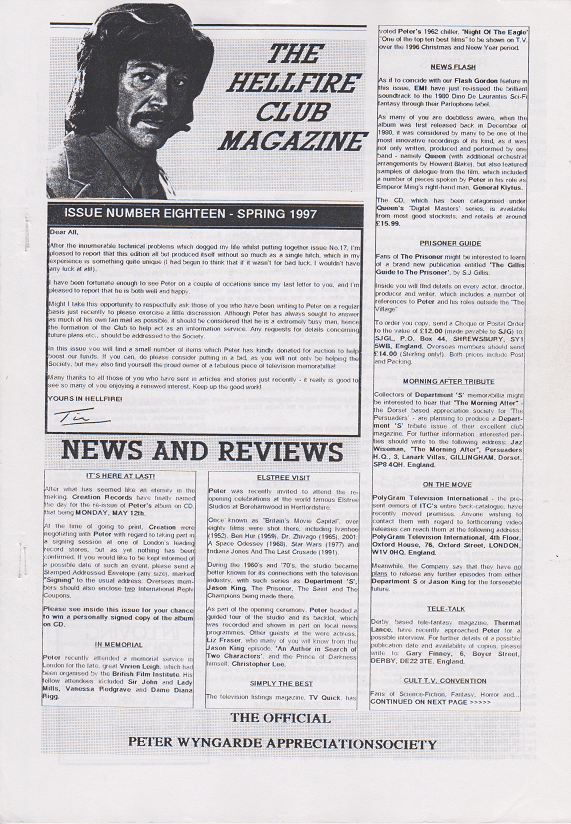 Although the Official Peter Wyngarde Appreciation Society was formed in early 1990, the first of its magazines was only published in January 1992