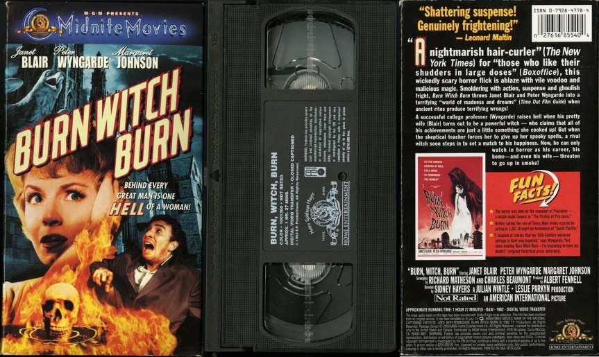 Above: Early 1980’s release of ‘Burn, Witch, Burn’ on video cassette (USA), with introduction by Orson Welles
