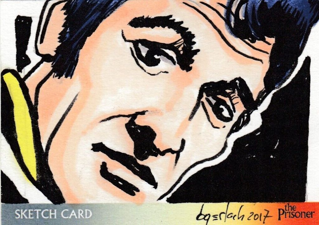 Above: 2018 Sketch Card of Peter as Number 2 by Bruce Gerlach – published by Unstoppable Cards for the 50th Anniversary of The Prisoner.