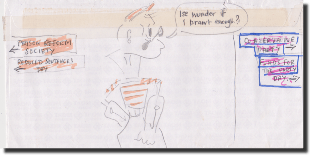 He was no Leonardo da Vinci, but that didn’t stop Peter from drawing on anything and eveything he could find, including on postcards and the backs of envelopes. Here are just some of the sketches and cartoons I saved over the years…