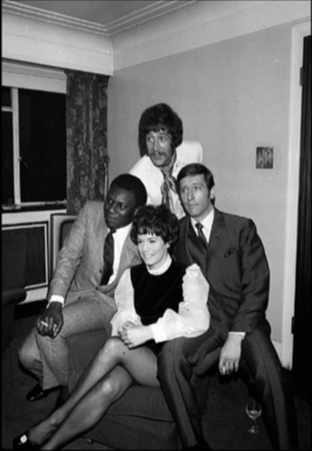 Above Left (clockwise): Peter, Joel Fabiani (Stewart Sullivan), Rosemary Nicols (Annabelle Hurst) and Dennis Alaba Peters (Sir Curtis Seretse). Above Right: Peter with Rosemary Nicols.