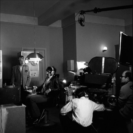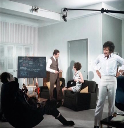 Above Left: With Barbara Murray and director, Ray Austin during the filming of ‘Dead Men Die Twice’. Above Right: Peter, Joel and Rosemary on set.