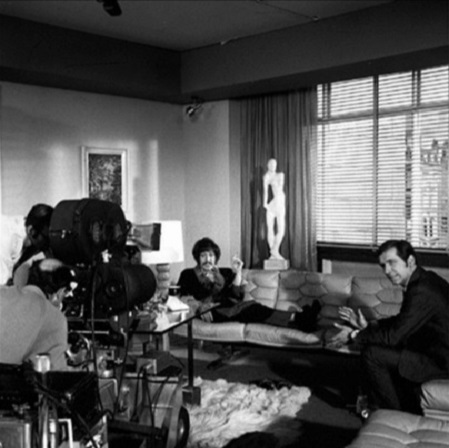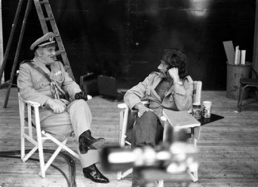 Above Left: Peter enjoying a break with guest stars on ‘Jason King’. Right: With Clifford Evans (as Colonel Cordoba) during a break on ‘A Kiss For A Beautiful Killer’