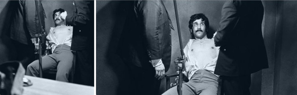 Above Left: Peter enjoying a cup of tea and a cigarette during a break on location. The episode is, ‘A Cellar Full of Silence’. Above Right: Peter talking shop with director, John Gilling, during a break in filming, ‘The Double Death of Charlie Crippen’.